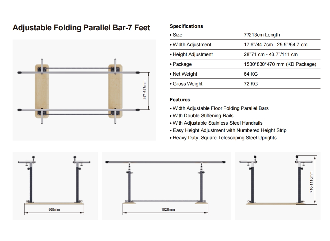 The Folding Parallel Bars are heavy duty medical devices designed for daily use for patients undergoing exercise, physical and occupational rehabilitation therapy.